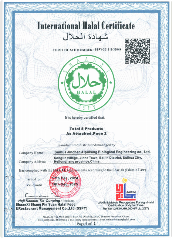 綏化金晨愛普康生物工程有限公司位于黑龍江省中南部地區的綏化市北林區,所處位置東經124度,北緯45度,位于松嫩平原的呼蘭河流域,“有寒地黑土,塞北江南”的美譽,是全國重要的商品糧基地,屬中溫帶大陸性季風氣候,四季分明,雨熱同期,冬季冰雪覆蓋,夏季降雨集中氣候溫熱濕潤。綏化金晨愛普康生物工程有限公司是一家專業從事健康養生產品研發、生產及銷售企業,公司占地總面積8000平方米,建筑面積5000平方米,公司周圍無任何污染源,是食品生產基地。公司生產車間潔凈度級別達到10萬級,同時擁有數十臺先進的生產設備及高科技檢驗儀器,從產品的原輔料、中間品、成品到銷售的全過程嚴格把關,使生產中每道工序都符合產品的高標準要求,從而保證了公司生產的每一袋產品合格,無質量缺陷。綏化金晨愛普康生物工程有限公司率先采用了企業資源ERP管理系統,肩負著養生產業的重要課題,同時又是江蘇省國家藥用植物重點實驗中心科研成果轉化的生產試驗基地,公司核心成員均為本科以上學歷。生產的產品有近五十個品種的代用茶產品,公司先后通過HALAL國際認證,編號為SSPY-201318-33849;ISO9001質量管理體系認證編號為XBH···